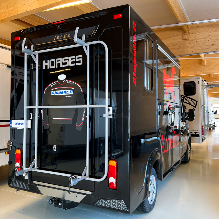 Alumiininen kärryteline asennettuna. Kaksille kärryille, hinta sis. alv.Rahoitus