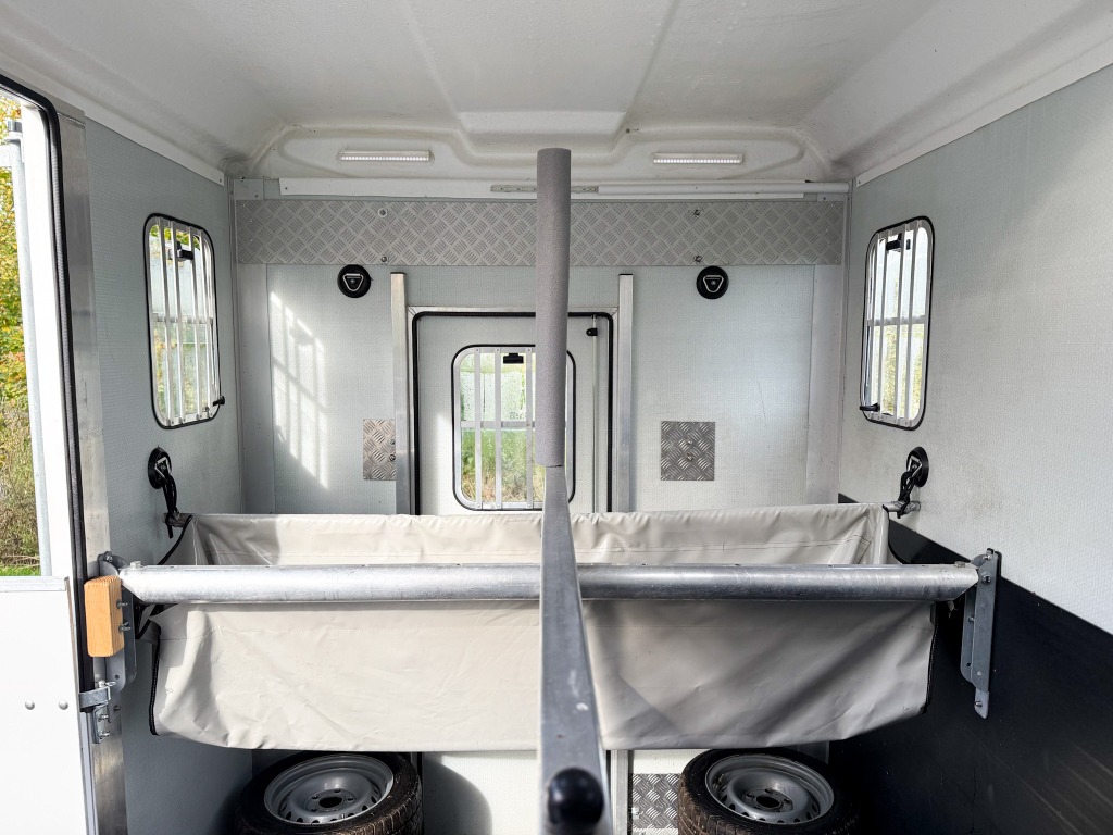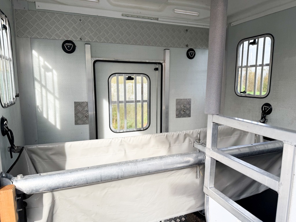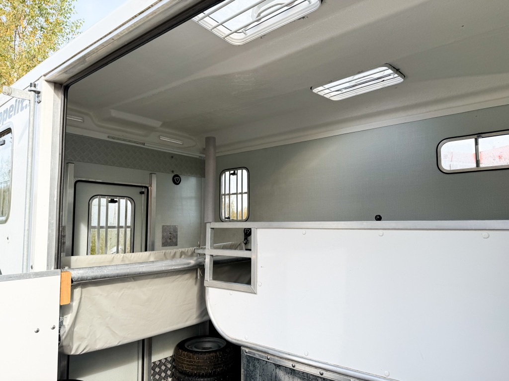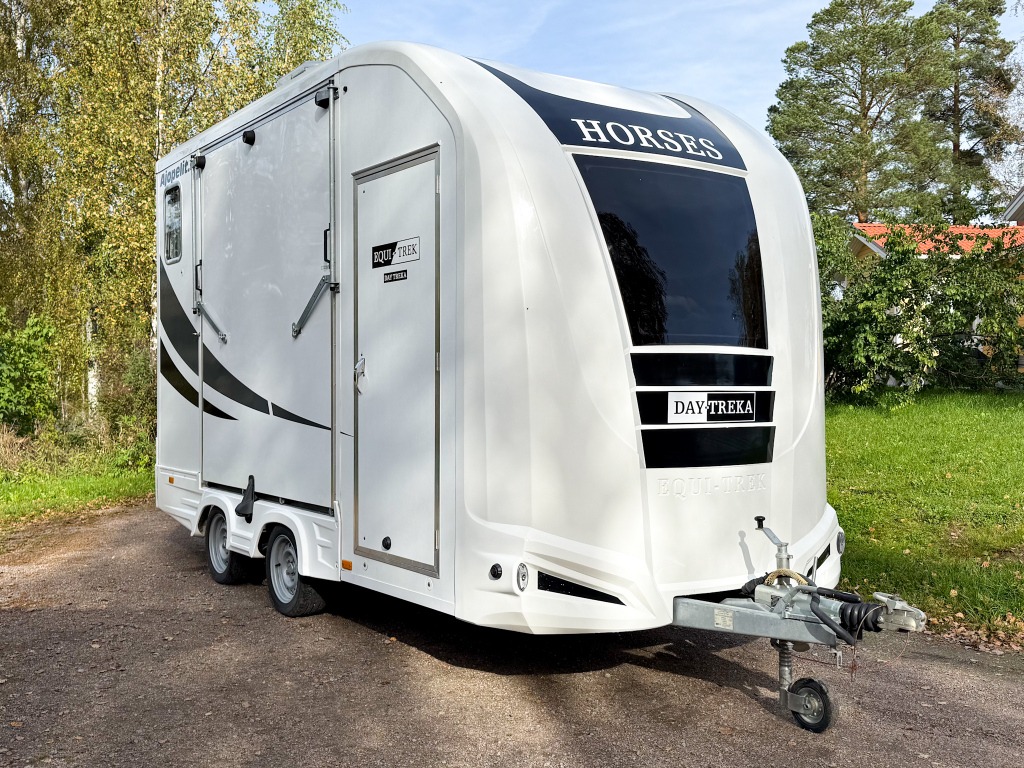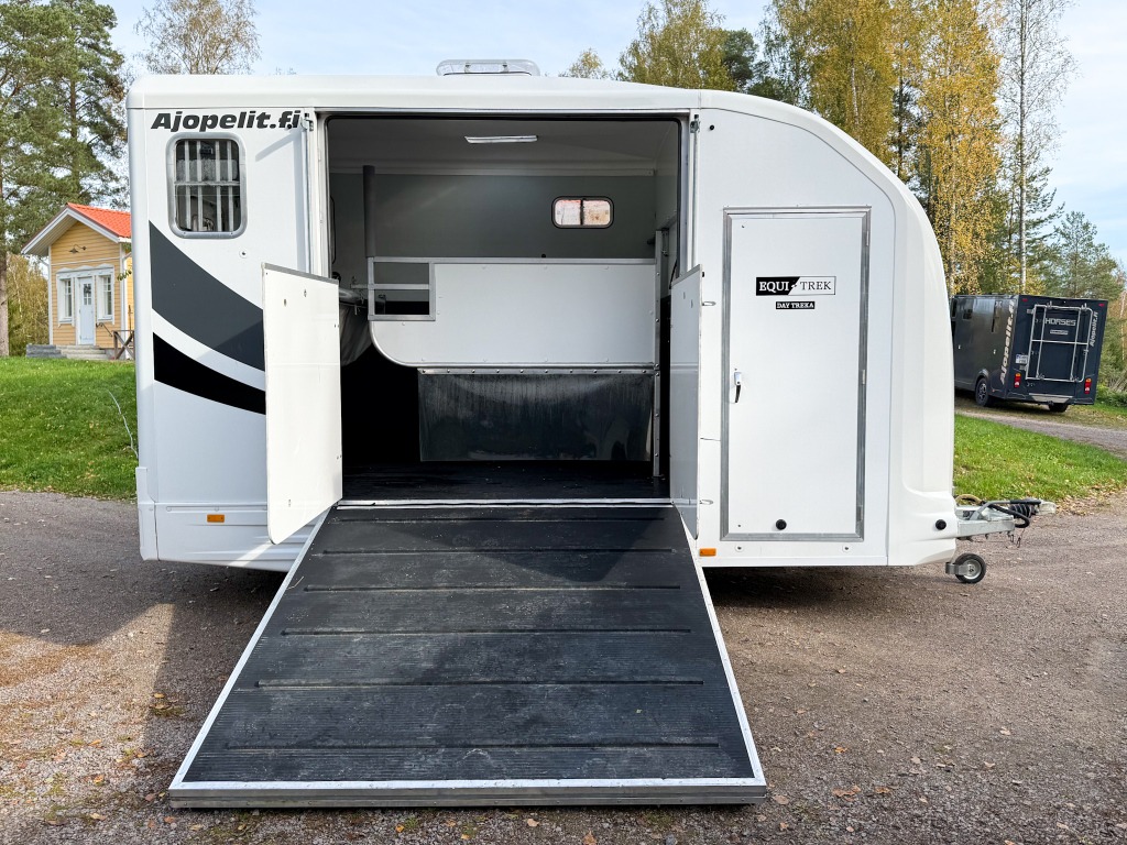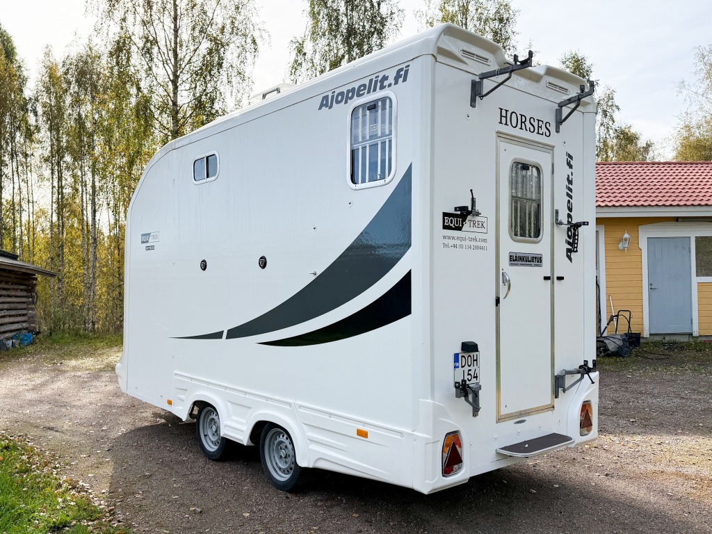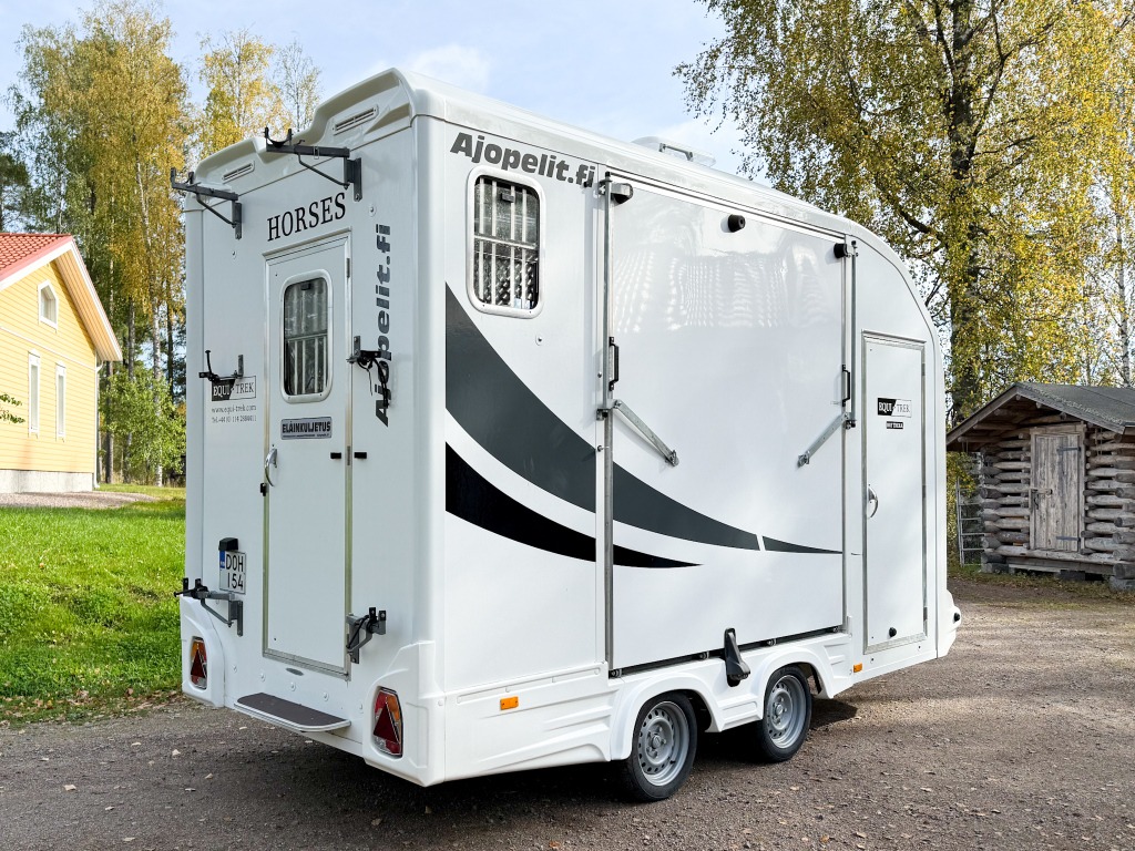 Vuoden 2024 alussa käyttöönotettu sivulastaustraileri isolla varustehuoneella! Hevoset kulkevat takapuoli edellä! Kärrykoukut, kahdet renkaat. Hevostilassa on siirrettävä väliseinä, heinäpressu, potkusuojat jotka auttavat ohjaamaan myös lastauksessa, puomit paniikkilukituksella, kaksi kattoikkunaa, avattavat sivuikkunat. Varustehuoneessa satula- ja suitsitelineet.