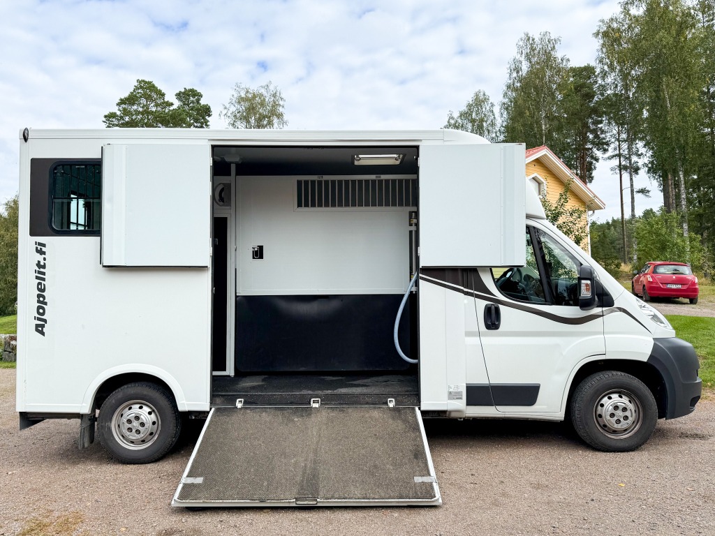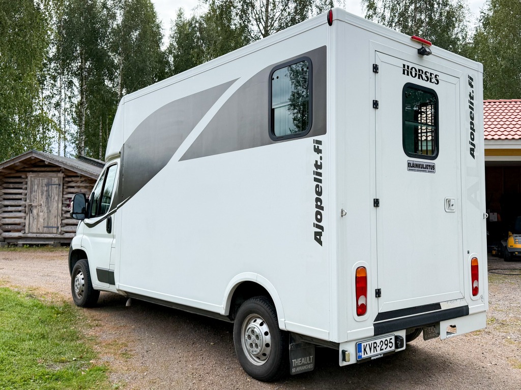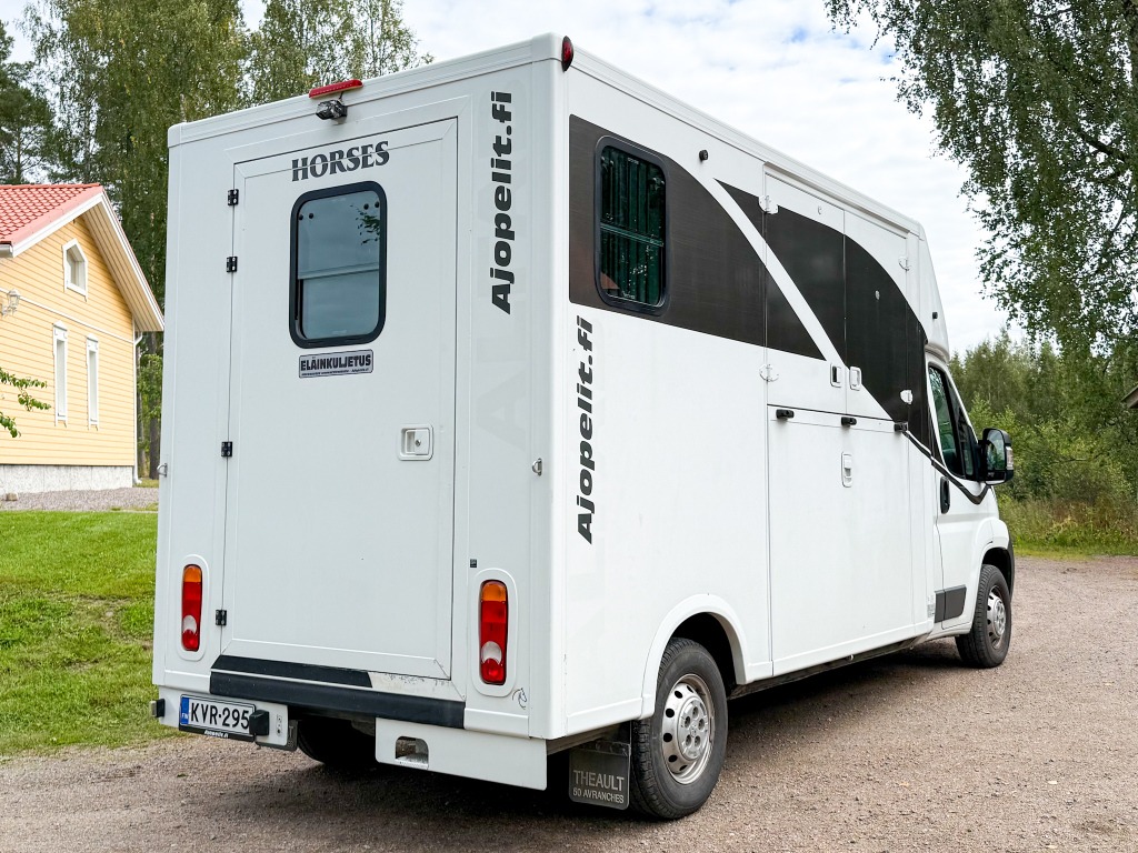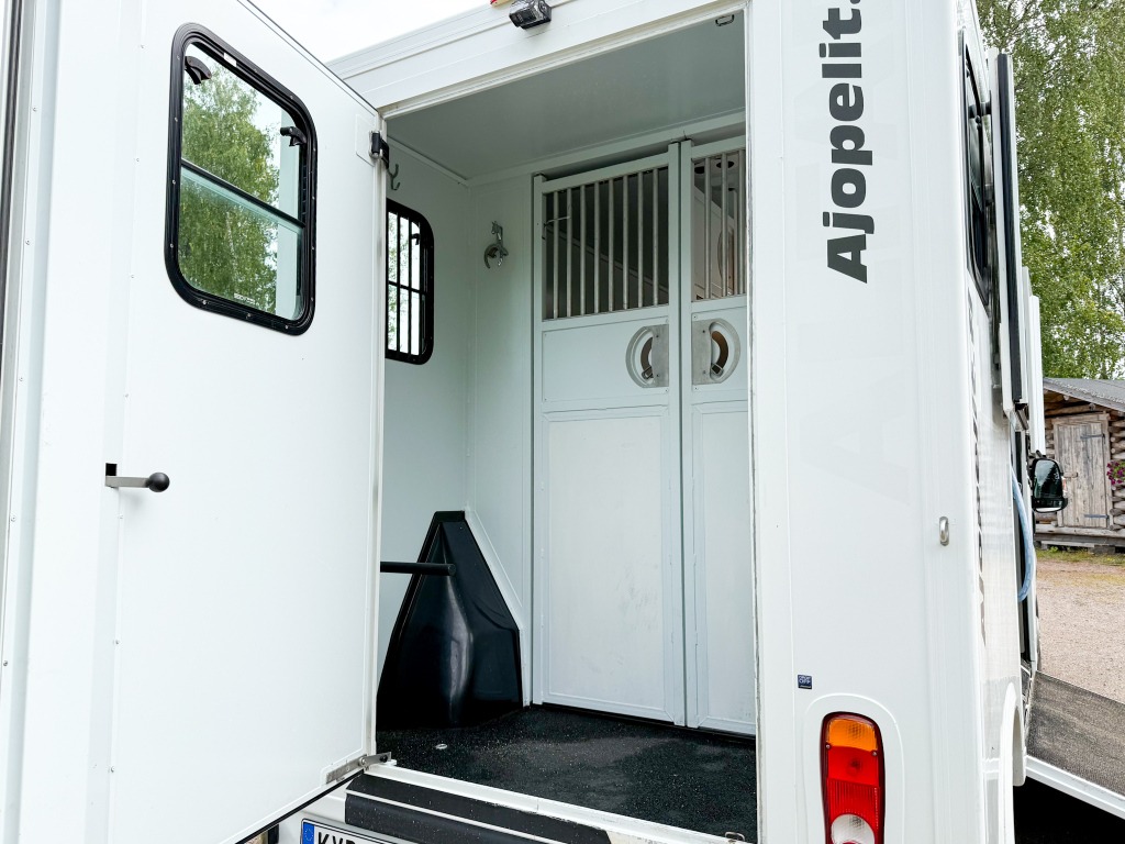 10% käsirahalla alk. 571,-/kk, kantavuus 1333 kg, C1-kortti, liukuva väliseinä, kamera, kattoimuri/-puhallin, avattava kattoluukku ja avattavat sivuikkunat, ohjaamon ja hevostilan välissä ikkuna. Varustetilassa satula- ja suitsitelineet, sekä käynti hevostilaan. Hevostilan saa helposti muunnettua yhdelle hevoselle karsinaksi esim. kisapäivien odotteluhetkiä varten.SUPERSIISTI TURVALLINEN KARSINAMALLI!